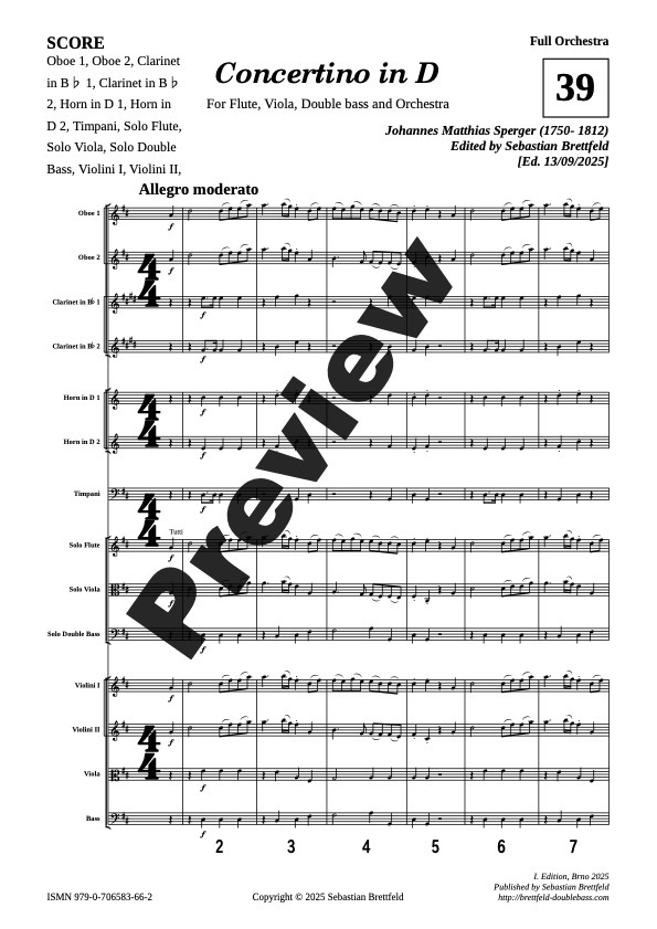 J. M. Sperger - Concertino in D for Flute, Viola, Double bass and Orchestra. Full Orchestra (with Solo parts in Solo tuning and Viennese tuning)