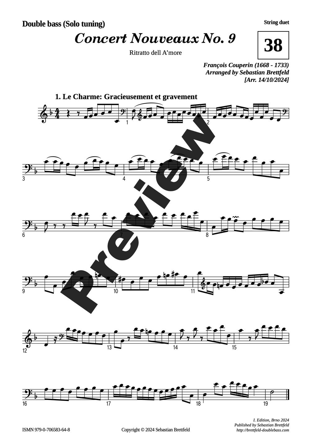 F. Couperin, Concert Nouveaux No. 9 Ritratto dell A'more, arr. for Double bass (Solo tuning, Viennese tuning) with Violin, Viola or Violoncello