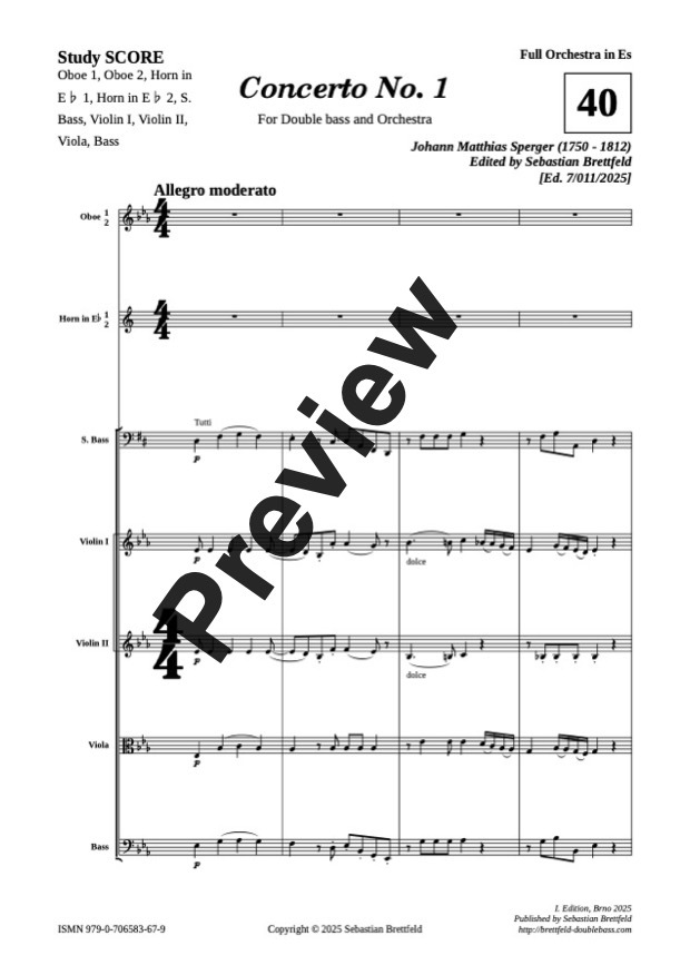 J. M. Sperger - Concerto for double bass and orchestra No. 1, Full Orchestra in Es